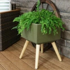 The Barkley Square planter by Sunnydaze Decor adds modern charm to any plant or flower arrangement. The fiber clay construction consists of a fiberglass and clay composite, created to give the planter the durability of stone but making it lighter weight so that it can be easily moved. The planter has a drainage hole and a removable plug so it can be used indoors or outdoors. Also included is a soil net to help with water drainage and keep the soil in the pot while lightening it up.