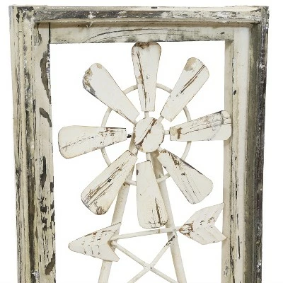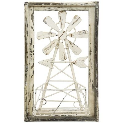 Set this framed planter in a window or against a wall to add a weathered, rustic touch to your home or outdoor spaces. This windmill framed planter is made from durable hand-painted metal with a hand-painted wooden frame. This decorative planter is perfect for adding a farmhouse touch to your living space or for displaying your favorite flowers or greenery. When used outdoors, a patina finish will develop over time.