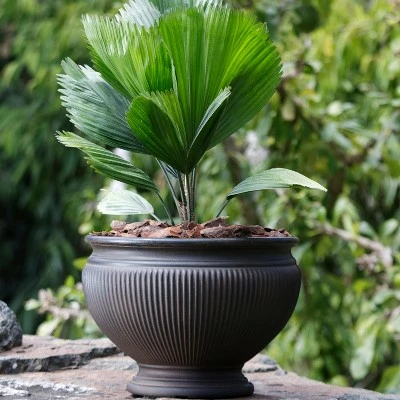 The Elizabeth planter features an antique-inspired design with a rippling and curvy style. It is made from linear low-density polyethylene (polyresin) that is resistant to cold-weather damage. After the molding process the planter is hand-painted with a UV-resistant finish. Plus, the double wall design features a full-depth inner wall which allows for optimal root insulation and does not compromise soil capacity making this planter truly all-weather. Also, if living in a windy environment, place gravel or sand in the space between the 2 walls to help stabilize it in stronger winds. The planter can be used inside too, just use a protective saucer when placing indoors to ensure surfaces or floors do not get damaged.