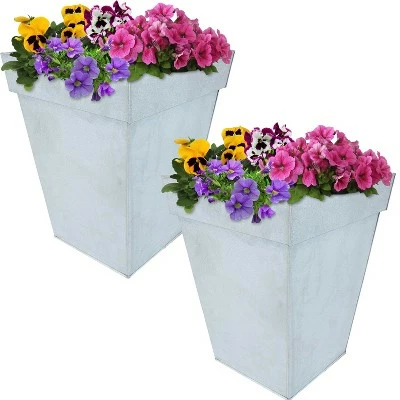 The Sunnydaze Square Galvanized Steel Planter is the perfect accent for your front porch, deck or patio. Made of durable galvanized steel, this garden planter is strong enough to resist a variety of weather conditions. With a wide square top and a tapered bottom, this flower planter has a classic look with rich color that will complement a variety of indoor and outdoor decor styles.