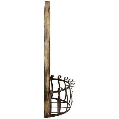 Capture the majesty and grandeur of a cathedral window with this elegant garden wood planter decor piece. Beautifully carved from wood for a weathered look and featuring a stylish metal railing, this planter holder provides the perfect place to display a flower pot. It features a striking pointed arch design and three slender window openings. It can be used either indoors or outdoors making it a lovely addition for the patio, front porch, living room, yard or sunroom.