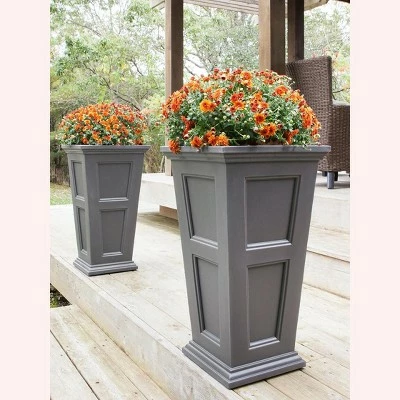 Dress up your landscape with these elegant, self-watering planters. They are rather tall planters at 28″ high, adding some drama to your patio. With clean lines and raised panel detailing, they have the look of fine woodworking. But, unlike wooden planters these are virtually maintenance free because they’re made from high quality polyethylene — there’s no need for annual painting or staining. With the best UV protection in the industry, these planters have a 15-year guarantee against fading. They have built-in reservoirs to supply a slow, steady supply of water to plants — just what plants need for healthy, stress-free growth.
