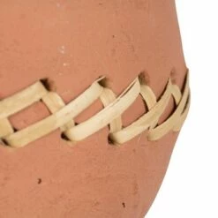 With a focus on mixing natural materials to create a beautifully-crafted terracotta pot, this planter was hand thrown by artisans in India and finished with rattan hand woven into the clay. The raw rattan softens the bold terracotta color to create a piece that is transitional within boho decor styles. A planter suited for accenting indoor or outdoor spaces. Due to the handcrafted nature of this item, no two pieces will be identical.