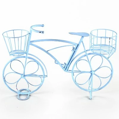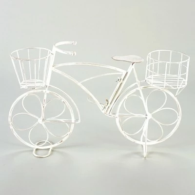 Enhance your outdoor home décor with a plant stand that looks like a vintage bicycle planter. The bike features 2 baskets for holding potted plants. Fill each basket in the white plant stand with flowers for a splash of color or green vines for a cascading effect. Create the charm of a farmhouse plant stand. You can place the metal bicycle planter on a front porch or patio, or display it as bike garden décor. 21-1/8″W x 4-3/4″D x 13-7/8″H, overall. Front basket, 4-3/4″ dia. x 4″H. Back basket, 4-3/4″ dia. x 3-1/4″H. Made of metal. Assembly required; assembly hardware included.