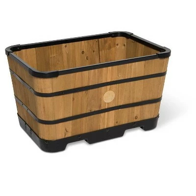 Make a statement! Our friends at VegTrug™ came up with this expanded new take on the traditional whiskey barrel planter. Same clean construction, wooden staves, metal bands, and rot-proof bottom in a classic trough shape.