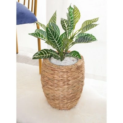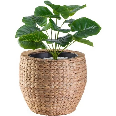 Create a greener home whether by planting herbs, veggies, and flowers in these unique water hyacinth planters. Water Hyacinth exterior offers a rustic touch to you home planting and durable metal interior pot provides secure base for your sprouts. Ideal to use in entryways, doorways, and and type of room these planters will welcome botanical life into any area placed.