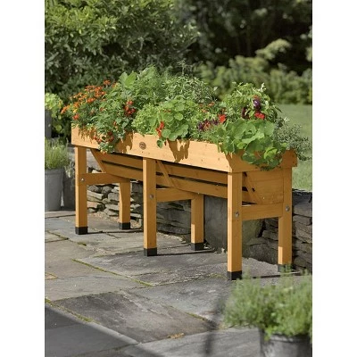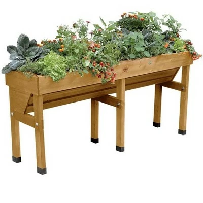 Place the Wallhugger VegTrug along a fence or wall to create a tidy and convenient vegetable growing area in a very small space. It’s deeper at the back for large plants like tomatoes, and shallower in front for greens, herbs and other small plants. Grow plants at an easy, ergonomic height; no bending or kneeling to plant, tend and harvest. Wheelchair accessible. The elevated bed means no weeds and fewer pests, too. Great for apartment or condo dwellers with limited space – and you can take it with you if you move! Includes a fitted fabric liner to keep soil contained while letting excess water drain. Plastic feet protect wood from wet surfaces. Quality construction and easy assembly.