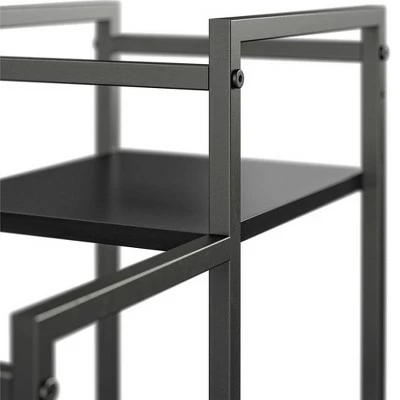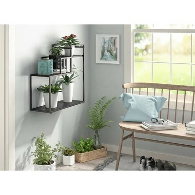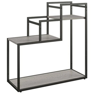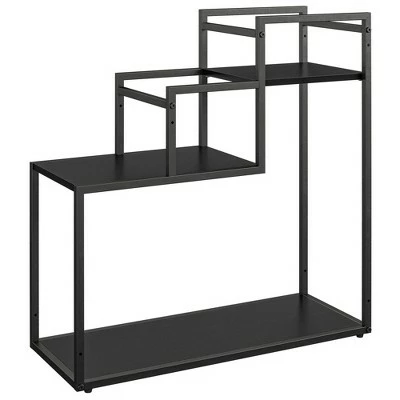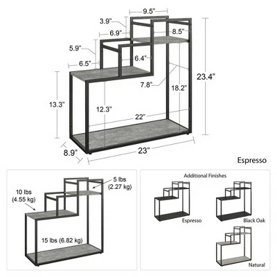Add a little green to your space with the Novogratz Weston Plant Stand. The classic finish on the laminated particleboard shelves pairs with the powder-coated metal frame for a modern, industrial look. The 2 smaller shelves can hold individual potted plants while the larger lower shelf is ideal for wider pots or decorations. Assembled dimensions: 23.39”H x 23.03”W x 8.94”D.