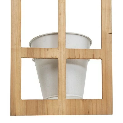 Display your favorite small vining plant in this statement wall planter. You will enjoy the traditional combination of natural wood and white, especially with a beautiful pop of greenery or flowers on you wall. The clean white pot floats in front of a long wooden frame that mimics vintage architectural windows, as if your plant were delicately placed on a windowsill.