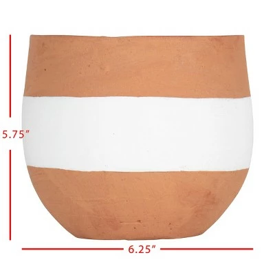 Using color blocking to enhance the texture of the rich terracotta clay, a bold white stripe wraps around the center of this terracotta pot. Hand thrown and hand painted by artisans in India, this terracotta planter combines simple design with intricate craftsmanship. Perfectly suited for accenting indoor and outdoor spaces with boho decor styles. Due to the handcrafted nature of this item, each piece is unique.