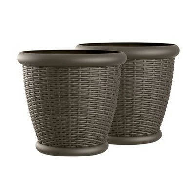 A pack of Willow Resin Wicker Decorative Planters from Suncast will make a beautiful and functional addition to your indoor or outdoor space. This pack of two wicker planters is suitable for both outdoor and indoor use and include a drain that makes managing water easy. These wicker planters will make for a stylish and durable accent piece for your plants.