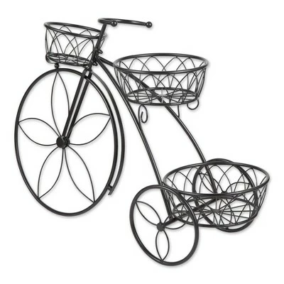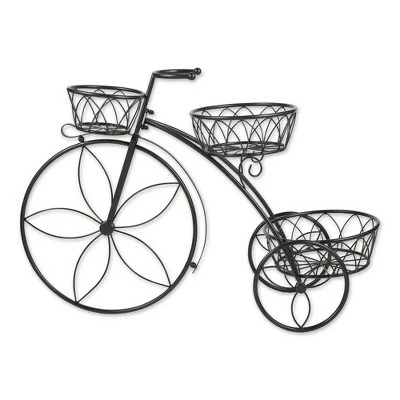 - Holds three plants and can be displayed in your flower garden, on a patio, deck, or sunroom. This charming bicycle plant stand is perfect to show off your favorite potted plants.