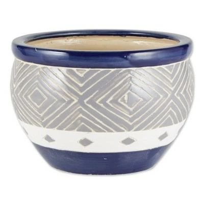 - Bright blue ceramic planters show off your greenery with a delicious dose of color! This super value set includes three pots in varied sizes, all with matching abstract motif. There is a drain hole at bottom of each pot to ensure your plant stays happy and healthy.