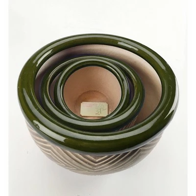 - Lush shades of sand and jade add natural elegance to your favorite plants, showing them off to stunning effect! Coordinating pots in three separate sizes create an effortless designer look. The bottom of each planter features a small drain hole to ensure your plant stays happy and healthy