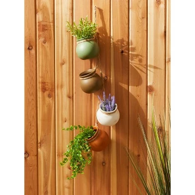 - Straight from the kitchen of a Santa Fe gourmet, this darling decoration recalls the fabled cooking pots treasured for generations in the Southwest. Four graceful earth tone vessels with jute hanging loop are ready to brighten any corner!
